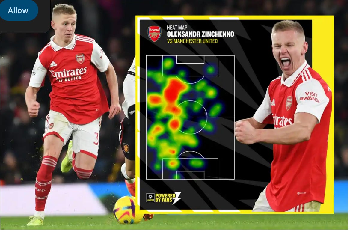 image: Oleksander Zinchenko’s heat map vs. Manchester United